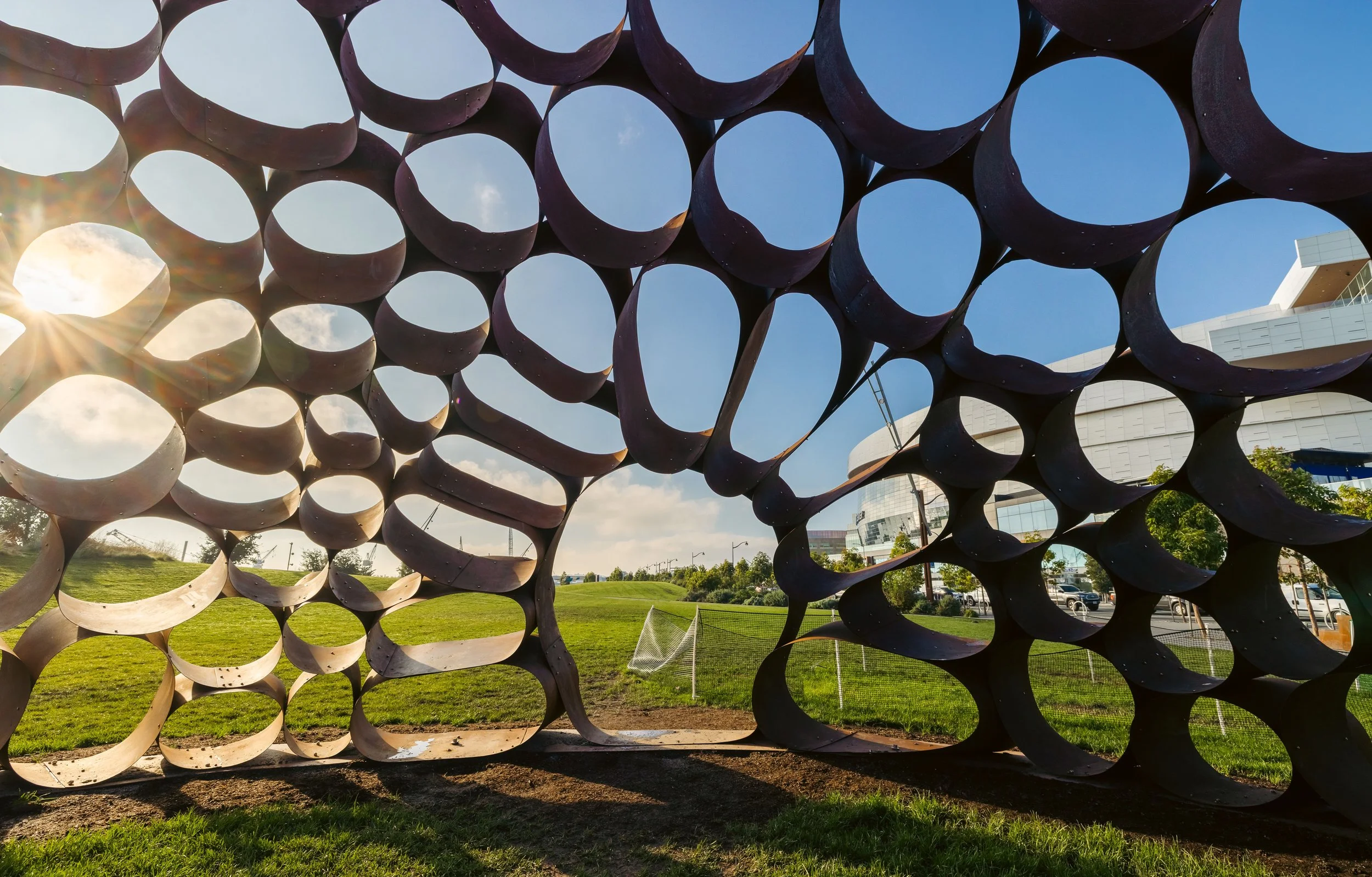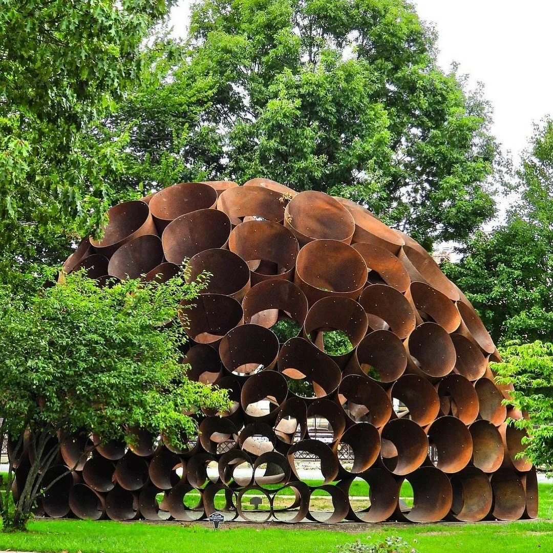 Inspired by natural forms like seashells and honeycombs, Godfrey creates artworks that can be experienced from within as well as from without. Composed of intricately stacked steel ovals, this striking hive-like structure engages viewers from afar, inviting them in to admire an interior dome that opens to the sky. “Louis” was originally commissioned in 2016 for the ArtPrize8 competition in Grand Rapids, Michigan, where it won the prize for Featured Public Project and was exhibited alongside a sculpture by the legendary artist Alexander Calder. Godfrey named the sculpture Louis after Louis Campau, an early settler known as the "Father of Grand Rapids."